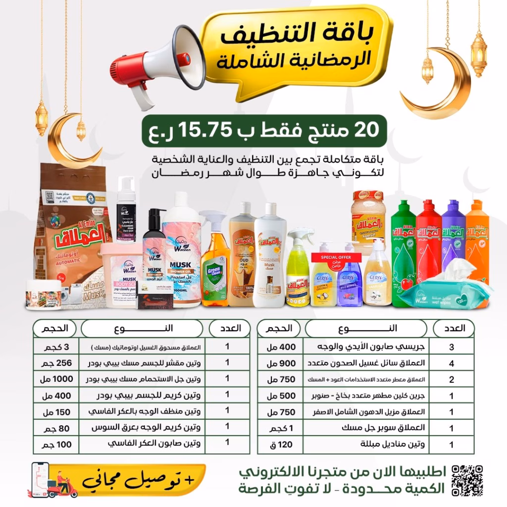 باقة التنظيف الرمضانية الشاملة 20 منتج ب15.750 ريال