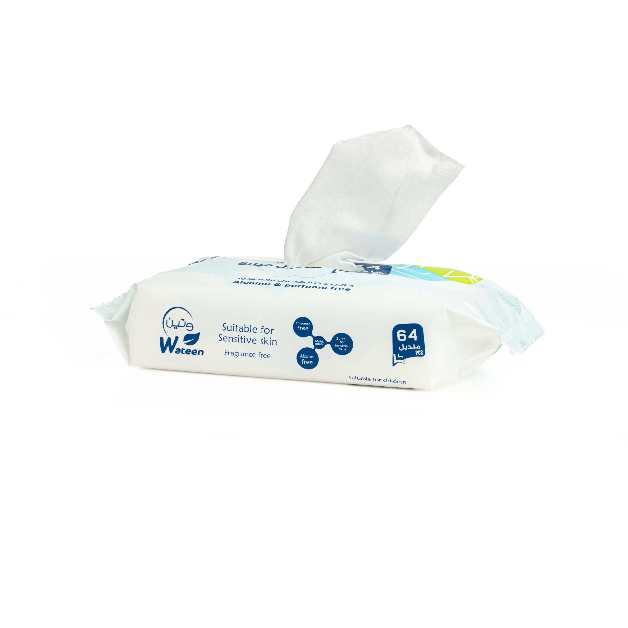 مناديل مبلله وتين خالي من الكحول 64 قطعة